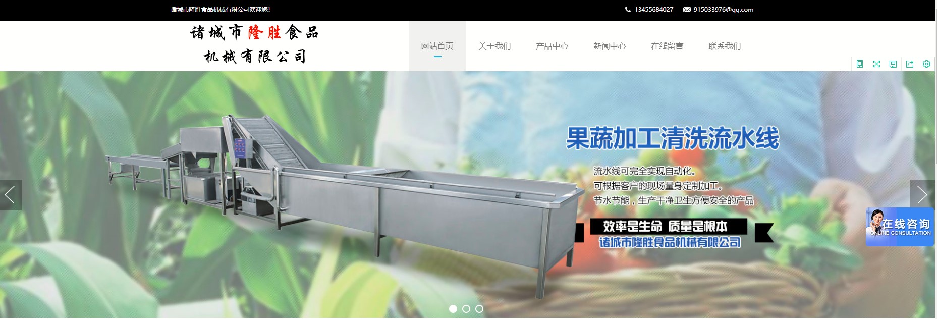 企业网站诸城市隆胜食品机械有限公司位于被誉为“中国龙城-舜帝故里”的山东诸城市。是一家专业食品工业装备的研发、生产、销售为一体的民营企业,是中国食品机械行业的骨干企业。